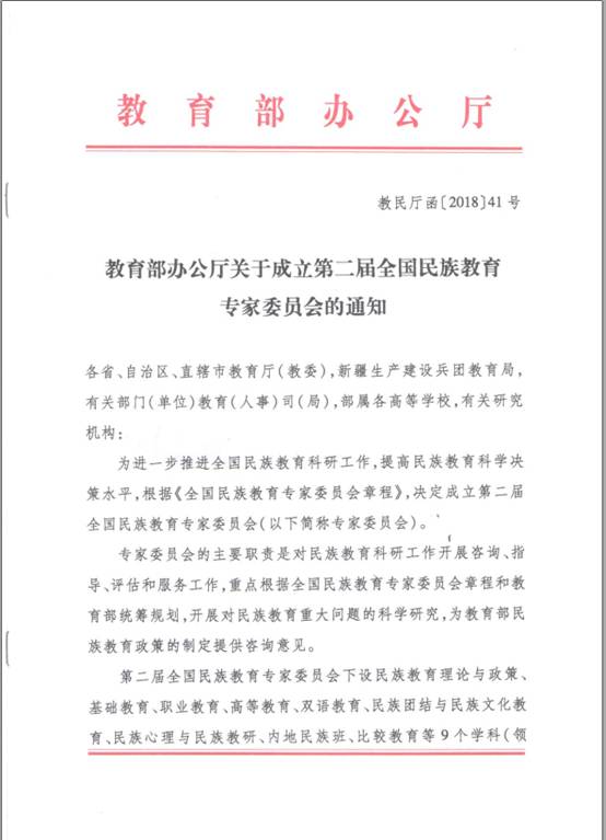 近日,教育部办公厅印发了“关于成立第二届全国民族教育专家委员会的通知”。我院吴瑞林副教授因其在少数民族双语教育和中华民族认同研究方面所做工作,被遴选为专家委员会民族心理与民族教研学科组专家。