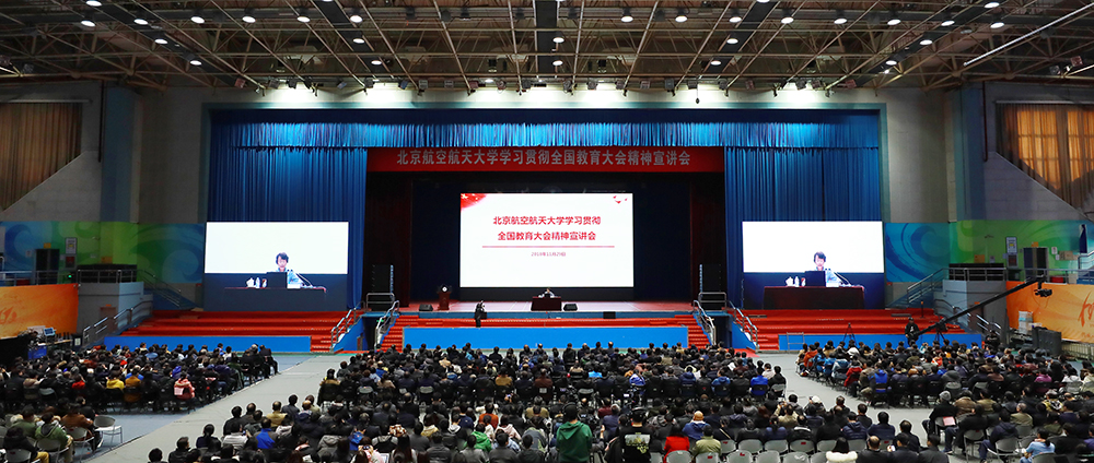 北航新闻网11月29日电(记者 余敏/文 邸白鹭 宋超/摄影)11月29日下午,金沙总站6165地址在学院路校区体育馆召开全校教师大会,深入学习贯彻全国教育大会精神。教育部“百人宣讲团”成员、北航党委书记曹淑敏为全校3100余名教职工宣讲了全国教育大会精神。会议由校党委副书记程基伟主持。