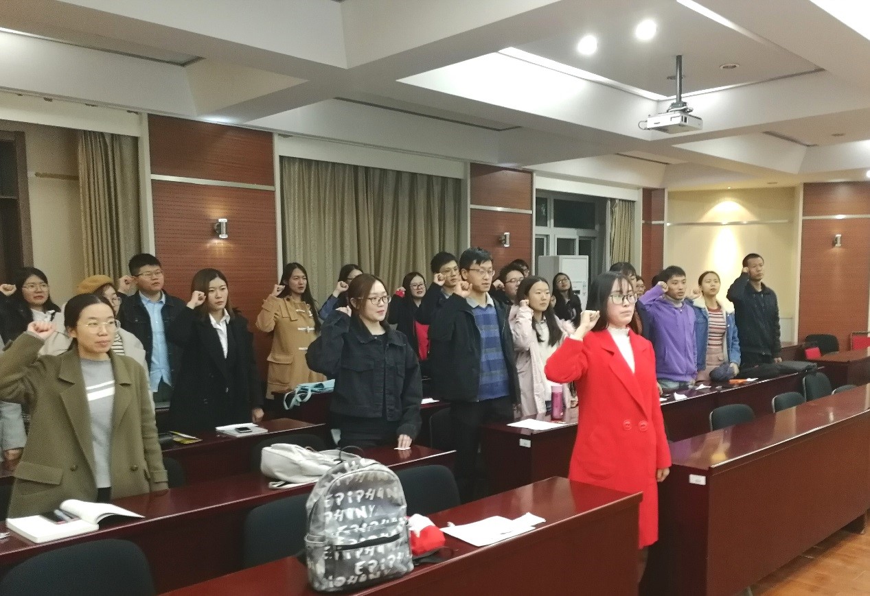 首先,王爽介绍了本次会议的主要目的是发展党员,为党支部注入新生力量。会议开始,全体成员起立重温入党誓词。