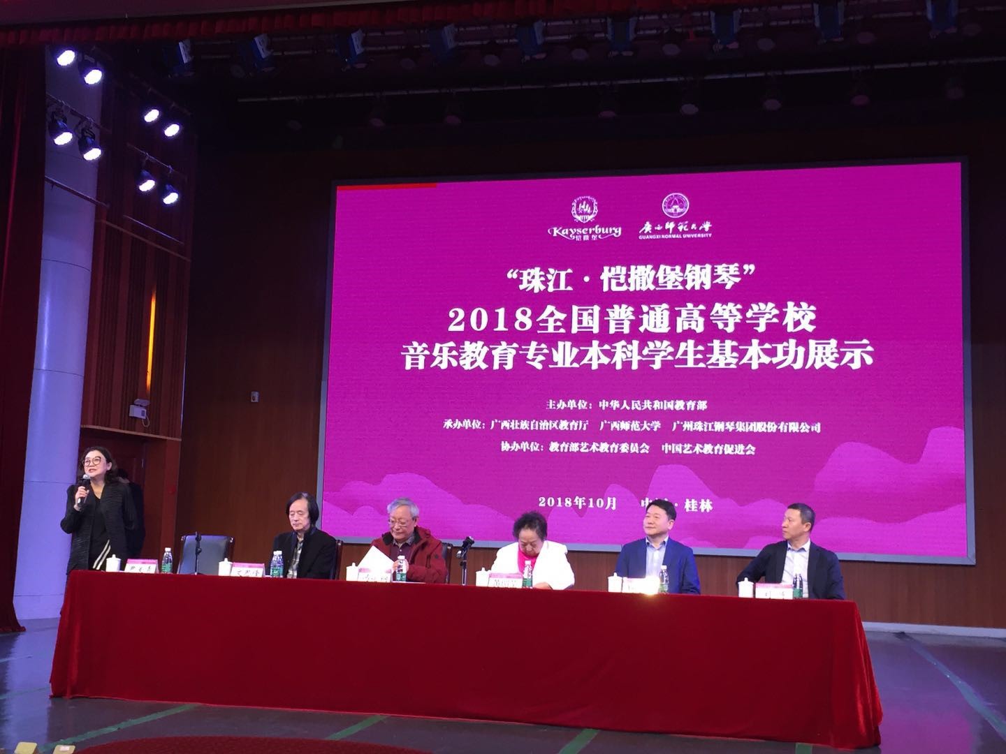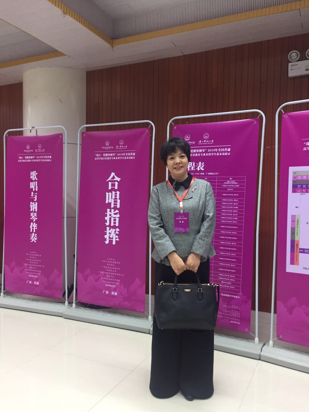2018年10月22日至26日,国家教育部在丹桂飘香的桂林举办了“全国第十届普通高校音乐教育专业本科学生基本功展示”。这是一次落实国务院《关于全面加强和改进学校美育工作的意见》文件精神,落实全国教育大会精神以及习总书记给中央美术学院教授们的回信精神的展示,这是一次师范院校教育改革成果的展示,这是一次面向新时代师范教育改革导向的展示。全国60所高校180名学生参加《合唱指挥》《歌唱与钢琴伴奏》《自弹自唱》《微课》《舞蹈》五项全能展示。我院苏丹娜教授担任合唱指挥项目评委。