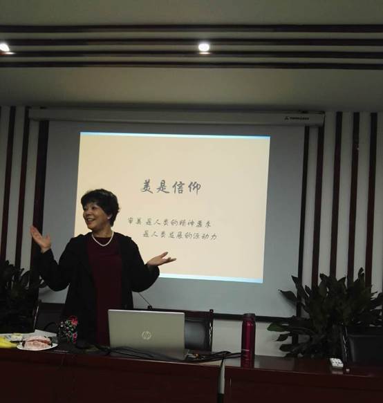 2018年10月中旬,我院艺术教育中心苏丹娜教应重庆师范大学音乐学院邀请,为来自全国29个省、市、区的40多名音乐教研员和教师授课。苏丹娜教授就当下国家高度重视“美育教育”的社会大背景结合自己的多年教学体会,为教师们做了主题为《美也是信仰》的系列讲座。为期一天的课程,苏丹娜教授从音乐教师的社会责任到如何实施“美育”教育具体教学方法进行系统的介绍,为教师们提供了音乐学科前沿的教学理念和行之有效的教学方法,受到学员喜爱和一致好评。