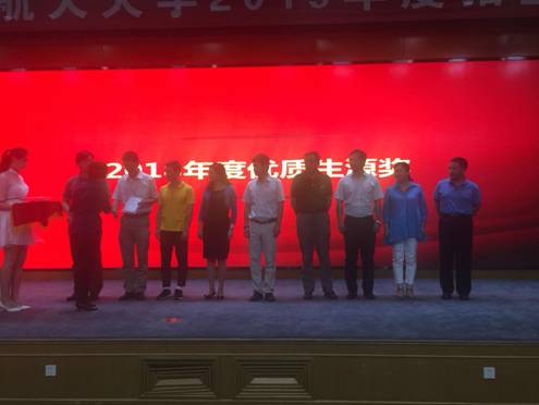 学校招生就业处处长 马进喜 老师全面总结了2018年度北航招生所取得成绩,学校领导为获奖单位和个人颁发了奖状。我院承担的内蒙古招生工作组获得了“优质生源奖”,李亚梅书记和郑晓齐院长代表学院领奖。