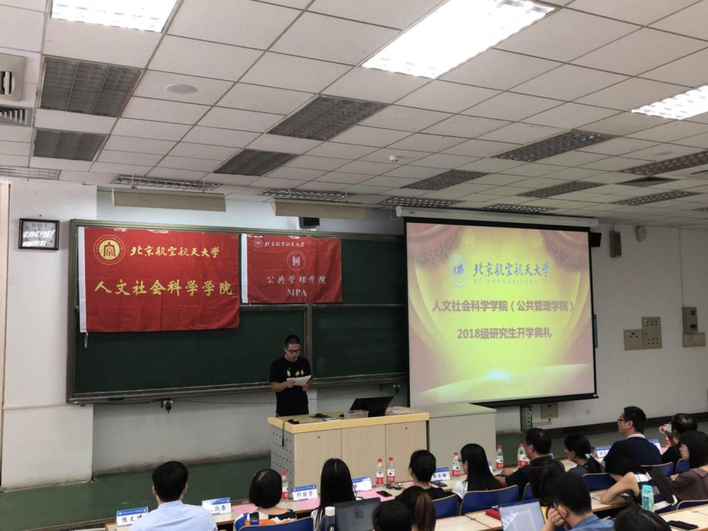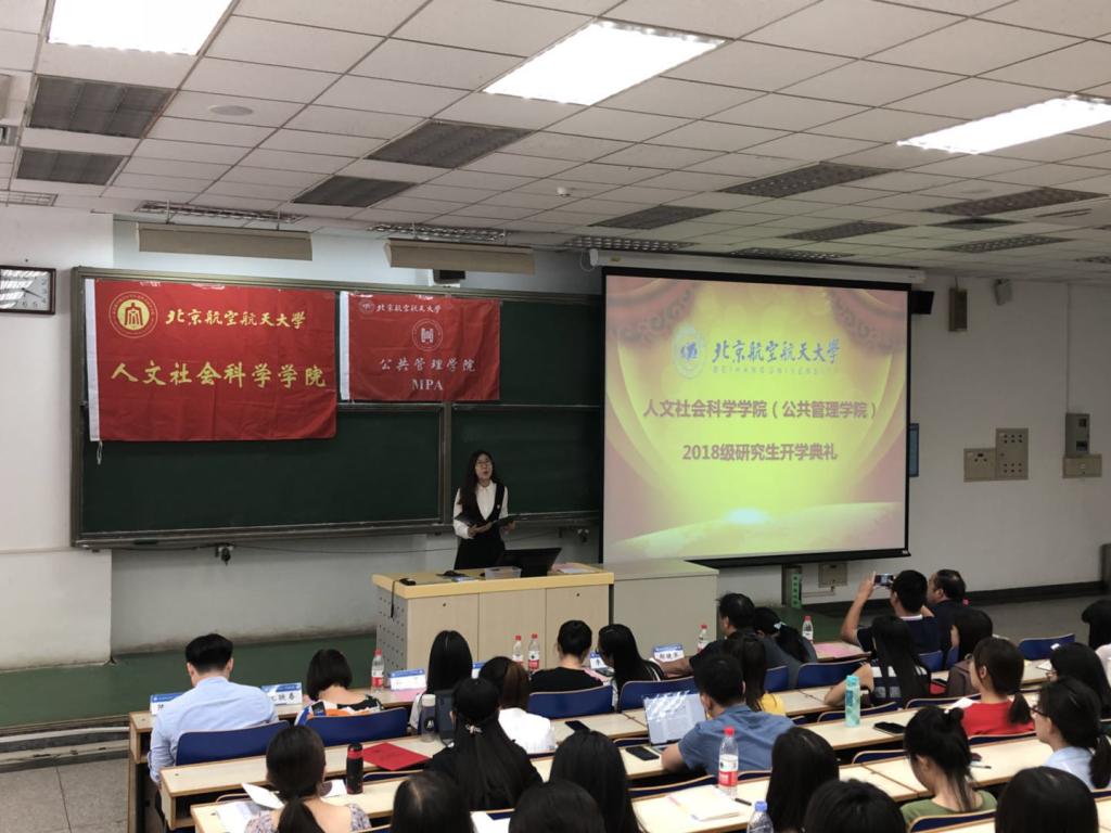 新生代表、MPA专业研究生张同玉代表全体MPA同学对学院和老师的倾力帮助表达了真挚的感谢,希望各位新同学都能够不迷茫、不浮躁、不狭隘,在北航不断进步。