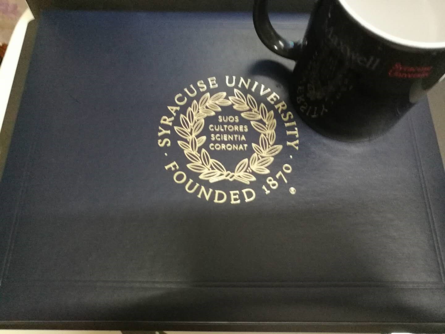 随后,由锡拉丘兹大学Maxwell学院Steve Lux老师、杰勒德老师等为每一位同学颁发了结业证书。并且赠送了礼物:会变色的印有Maxwell学院LOGO的茶杯、纪念章等等。