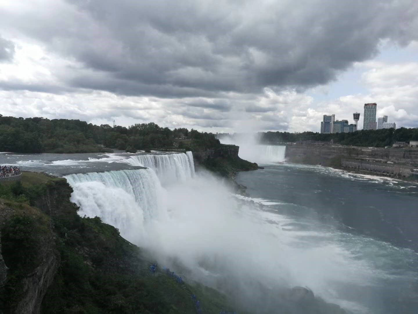尼亚加拉瀑布(Niagara Falls)位于美国纽约州和加拿大安大略省交界地带,名列世界第一大跨国瀑布。我们乘坐“雾中少女”(Maid of the Mist)号游船,置身其中体会感悟瀑布之魅,无不叹服于造物主的鬼斧神工,惊叹声、尖叫声、相机咔咔声不绝于耳。