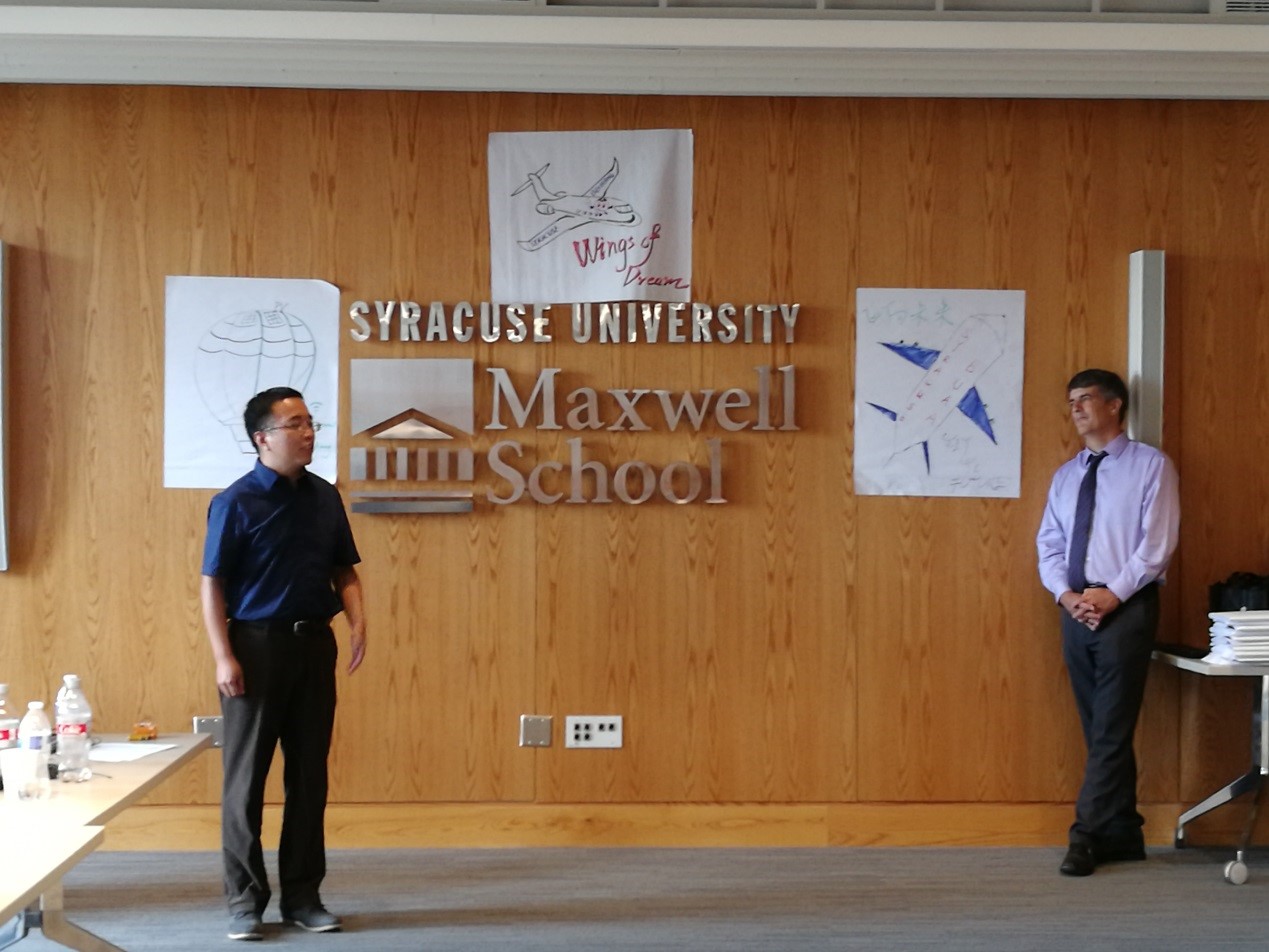 最后,代表北航和雪城大学的两位教授李亚、Steve先生分别就本次学习项目发表了讲话。李亚教授说,本次项目是北航人文学院和雪城大学麦克斯威尔学院的首次合作,感谢雪城大学各位老师和工作人员出色的组织和行程安排,这次项目的成功,也将成为双方展开更深更广的合作的起点。Steve教授说,麦克斯威尔学院一直与中国保持紧密合作,合作单位有深圳市政府、复旦大学等,未来也会跟北航进行更多深入合作,同时很高兴大家完成项目学习,如同希腊公民宣言所说,大家都是雪城大学马克斯维尔学院的“公民”,有权利随时来访学院,希望有机会在北航再见。