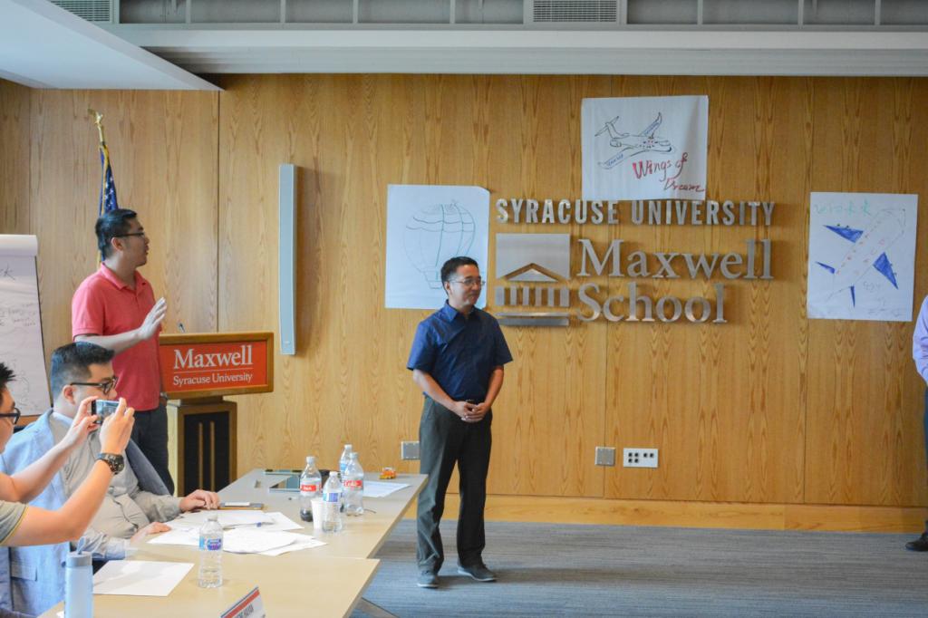 冲突与协作项目主任、高级公共管理教育副主任杰勒德老师要求大家在结业之前,把最想要留在锡拉丘兹大学的东西画下来。同学们集思广益、发挥想象力,经过热烈的讨论,将想法画在了纸上并进行展示,为雪城大学和麦克斯威尔学院送上有象征意义的“创意礼物”。