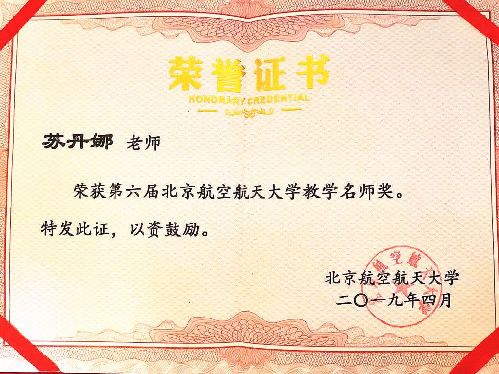 我院苏丹娜教授“以美育人”为己任,在北航任教30年来,不断探索与改革普通高校艺术育人的教学模式、教学内容和教学方法。鉴于苏丹娜教授在本科教学中教学效果好,受到学生好评,同时,她的教学方法和教学实践在国内美育教育产生了广泛的影响,经评选,2019年被评为“北航教学名师”。
