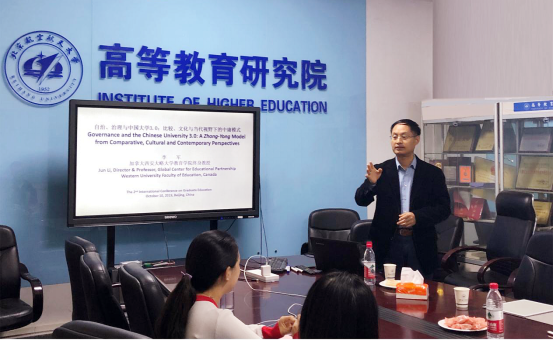 10月11日,加拿大西安大略大学教育学院终身教授李军先生,应邀在金沙总站6165地址高等教育研究院开展了题为《自治、治理与中国大学3.0比较、文化与当代视野下的中庸模式》的讲座。马永红教授主持了本次论坛,刘扬、包艳华副教授及在读博士、硕士20余人参加。