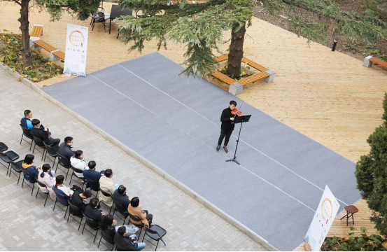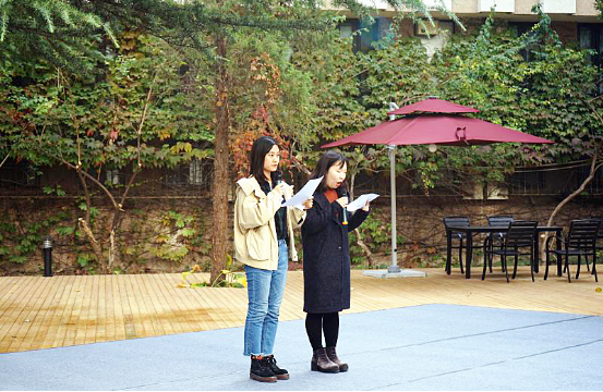 北航的秋天被银杏叶和白蜡树染成金黄色,人文公管学院旁的荷花池更是“湖光秋月两相和,潭面无风镜未磨”。“雅集”在古文中指文人雅士吟咏诗文、议论学问的集会。将“雅集”带进充满人文精神的校园美景中。虽不能相较于先贤因时、因地、因主题重新创作诗词,但广大文友也以葫芦丝、琵琶、小提琴、诗朗诵等演绎了一次不一样的“人文雅集”。