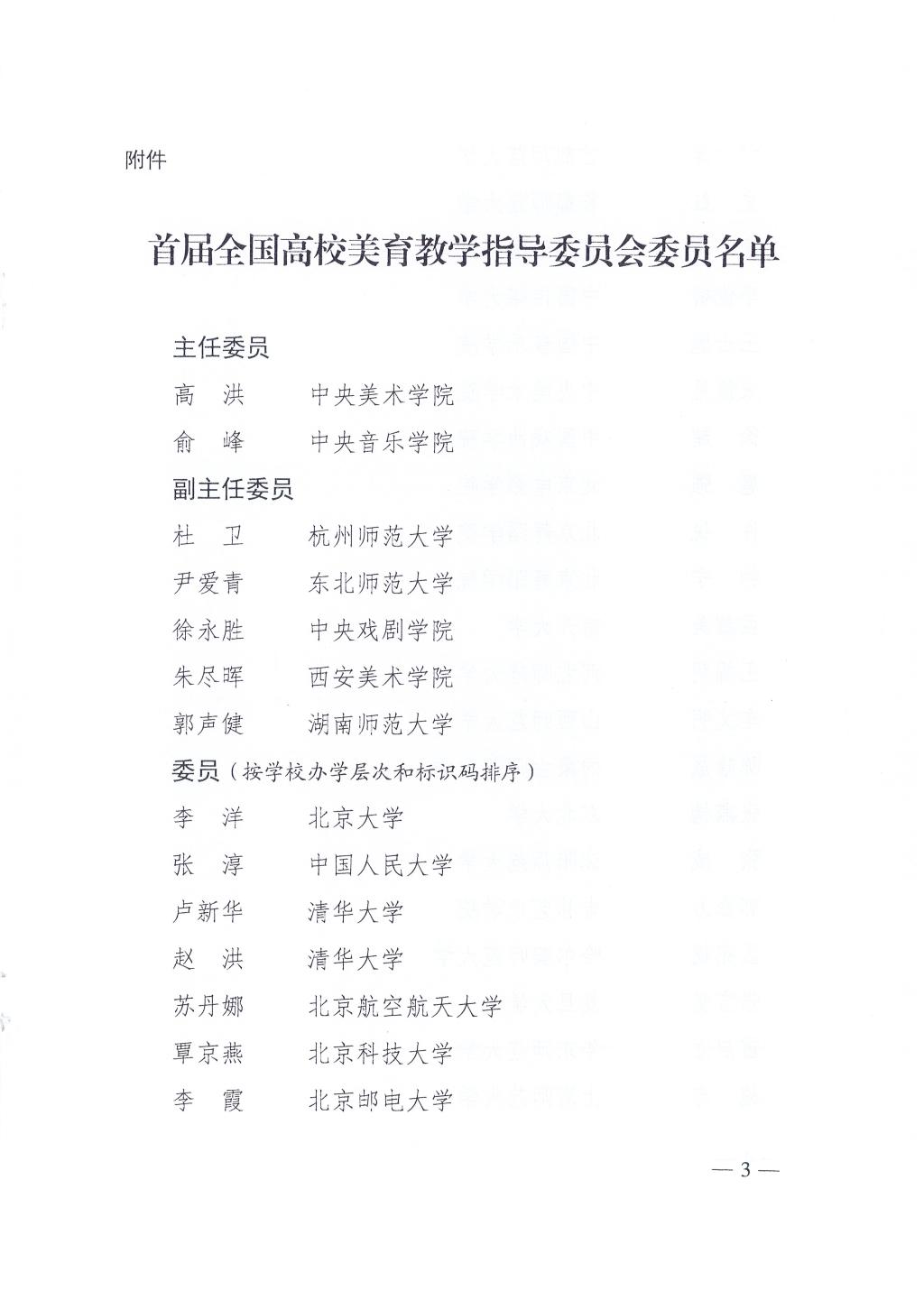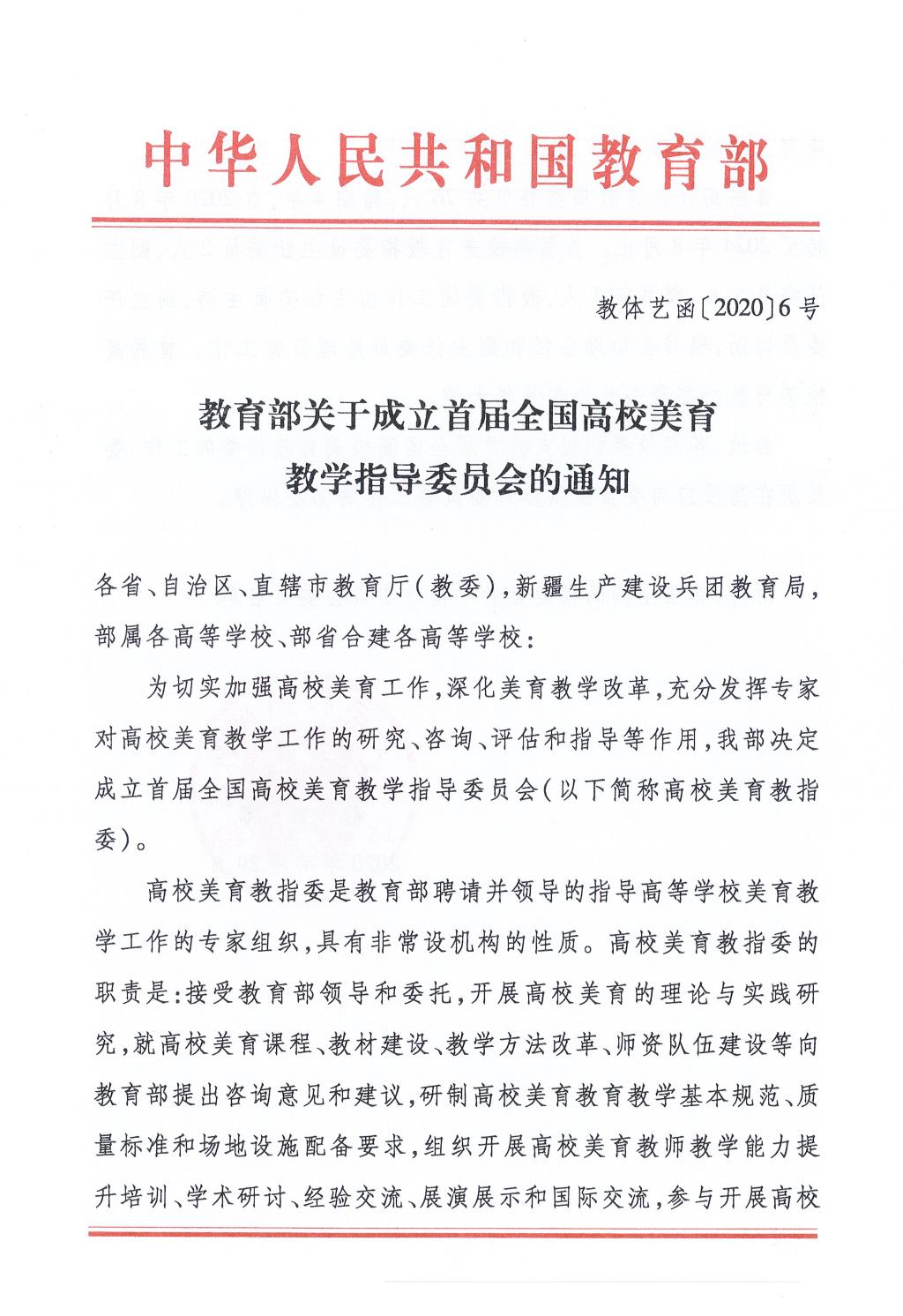 为切实落实高校美育工作,改革与提升美育教学的质量,经省级教育厅、学校和教育部艺术教育委员会推荐,教育部审核遴选,我校人文学院艺术教育中心苏丹娜教授,入选“首届全国高校美育教学指导委员会“。