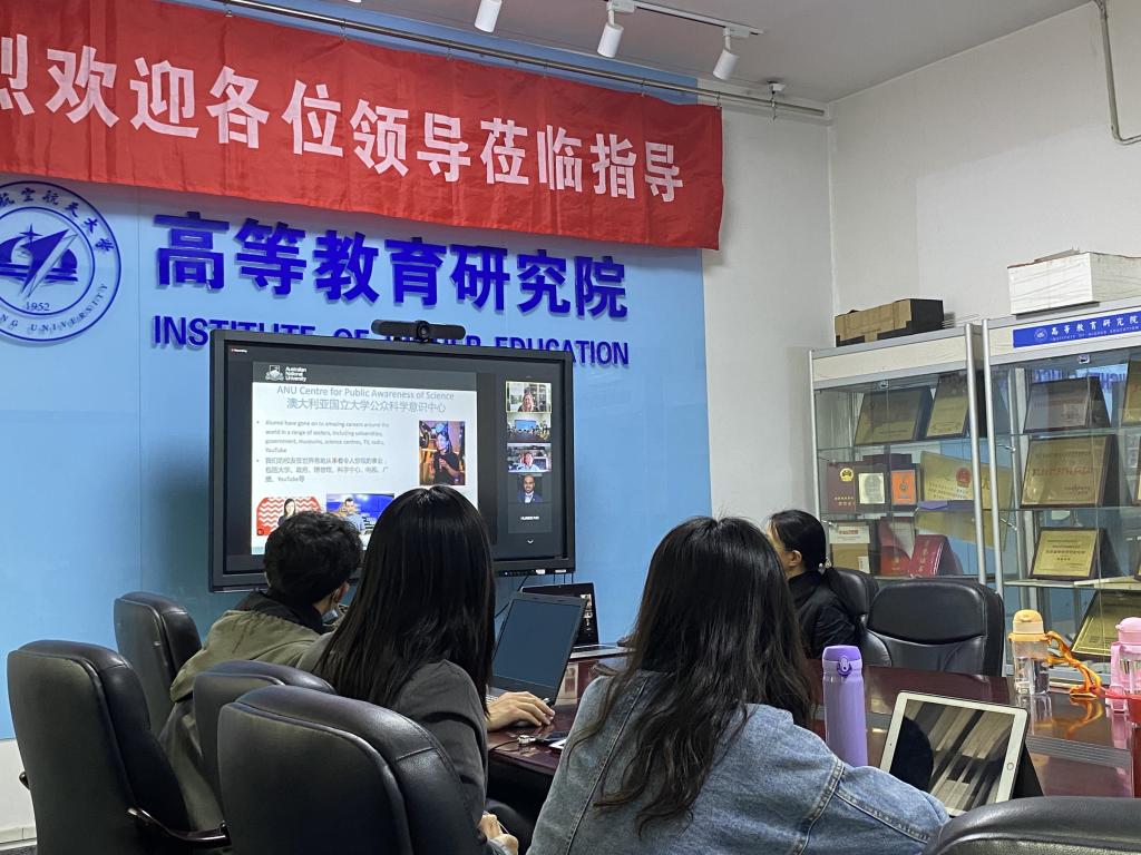 2020年10月15日星期四下午2点,北航-澳国立联合培养科普双硕士项目线上宣讲会借助ZOOM平台远程会议举行。本次参会者为2020级科普专业硕士,宣讲会第二现场在北航高等教育研究院216会议室,云端、现场交流顺畅,互动踊跃。本次宣讲会三位主讲嘉宾是来自澳大利亚国立大学(以下简称澳国立)公众科学意识中心(CPAS)主任Joan Leach教授、高级讲师Will Grant博士、国际事务发展部的Arthur Xu先生。北航高等教育研究院田华老师出席本次宣讲会活动。