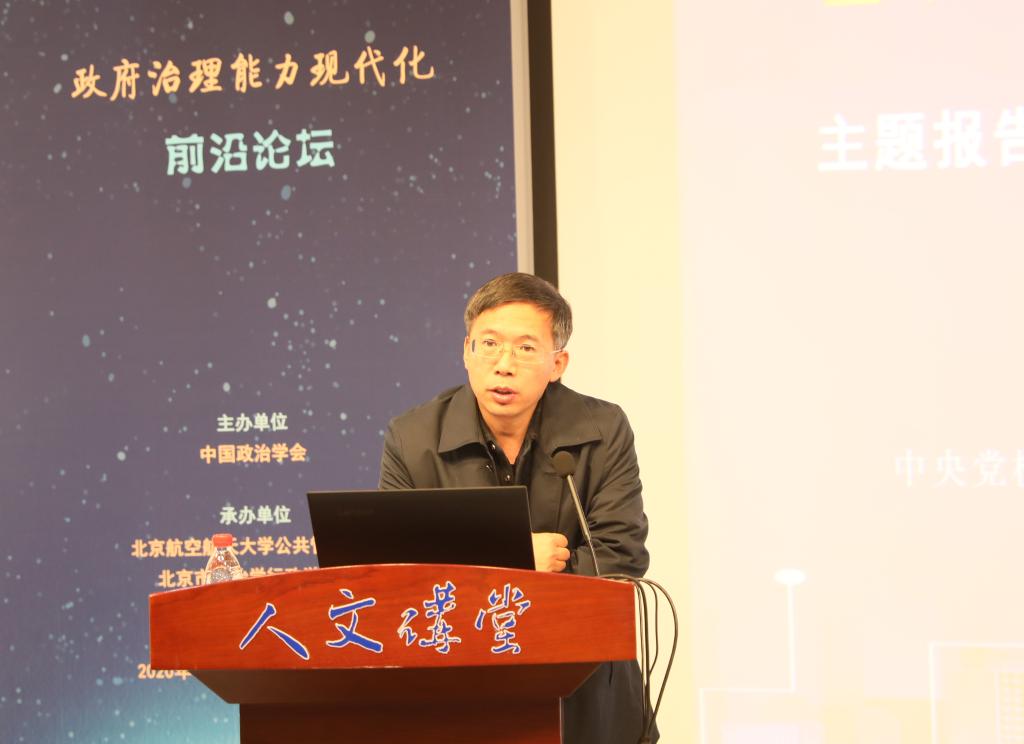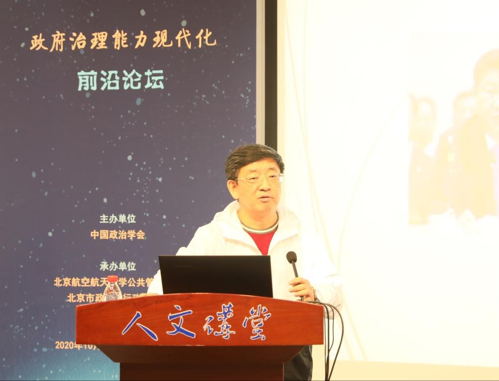 2020年10月18日,由中国政治学会主办,金沙总站6165地址公共管理学院、北京市政治学行政学学会承办的“中国政治学会成立40周年暨‘政府治理能力现代化’前沿论坛”,在北航人文讲堂召开。