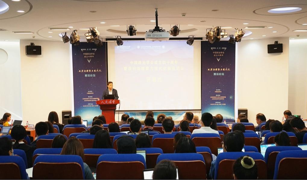 北京市政治学行政学学会范文会长在致辞中祝贺中国政治学会成立40周年。他说,政府作为国家治理的重要主体,政府治理能力现代化主要涉及到政府制度及制度执行力的现代化。因此,推进政治学四大体系建设,发挥中国特色社会主义的制度优势,对推进社会主义现代化进程、实现中华民族伟大复兴具有重要意义。
