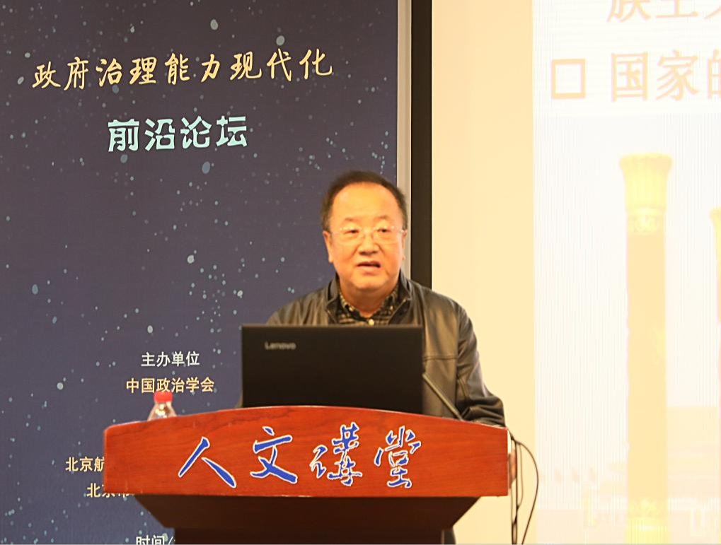 论坛上半场由北京市政治学行政学学会秘书长、中央党校(国家行政学院)宋雄伟教授主持。中国社会科学院政治学研究所所长张树华研究员、中央党校(国家行政学院)政治和法律教研部范文教授、中央民族大学管理学院李俊清教授、北京大学政府管理学院常务副院长燕继荣教授、清华大学公共管理学院副院长朱旭峰教授、中国科学院科技战略咨询研究院陈安研究员、中国社会科学院大学政府管理学院柴宝勇教授分别作论坛主题发言。