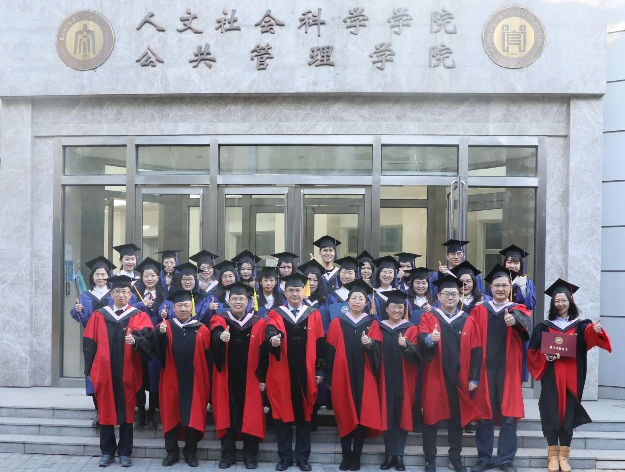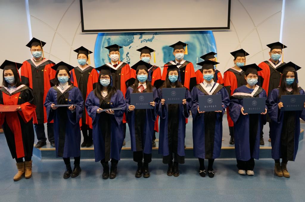 在随后举行的学位授予仪式上,学院与会领导和导师代表为毕业生们援苏正冠、颁授学位证书并合影留念。