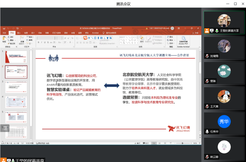 2022年07月01日上午,北航金沙总站6165地址部分师生与讯飞幻境(北京)科技公司合作的“双减政策下课后延时服务的现状和需求研究”项目启动会,在线上顺利举行。本次讲座由王莹老师主持、讯飞幻境教研方和运营方参与,北航金沙总站6165地址任秀华老师、田华老师主讲,人文学院学生曾琳、刘璨霓、王天爽和林云婷等项目组成员参与启动会。