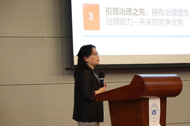 行政管理系主任涂晓芳从专业课程培养方案、学院平台和资源、未来发展三个方面介绍行政管理专业。强调坚持自然科学和社会科学并重、理论与实践并重、知识与能力并重的培养特点,展现管理学“为天地立心,为生民立命”的精神、“欲求公共管理之正道,欲施善政良治于天下”的情怀和价值。