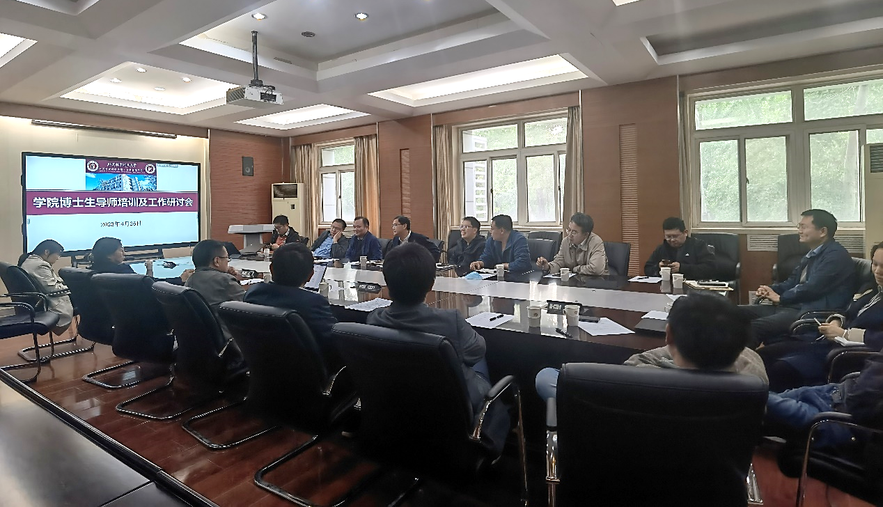 4月26日下午,学院召开博士生导师培训及工作研讨会。学院领导班子成员、博士生导师参会,会议由院长蔡劲松主持。