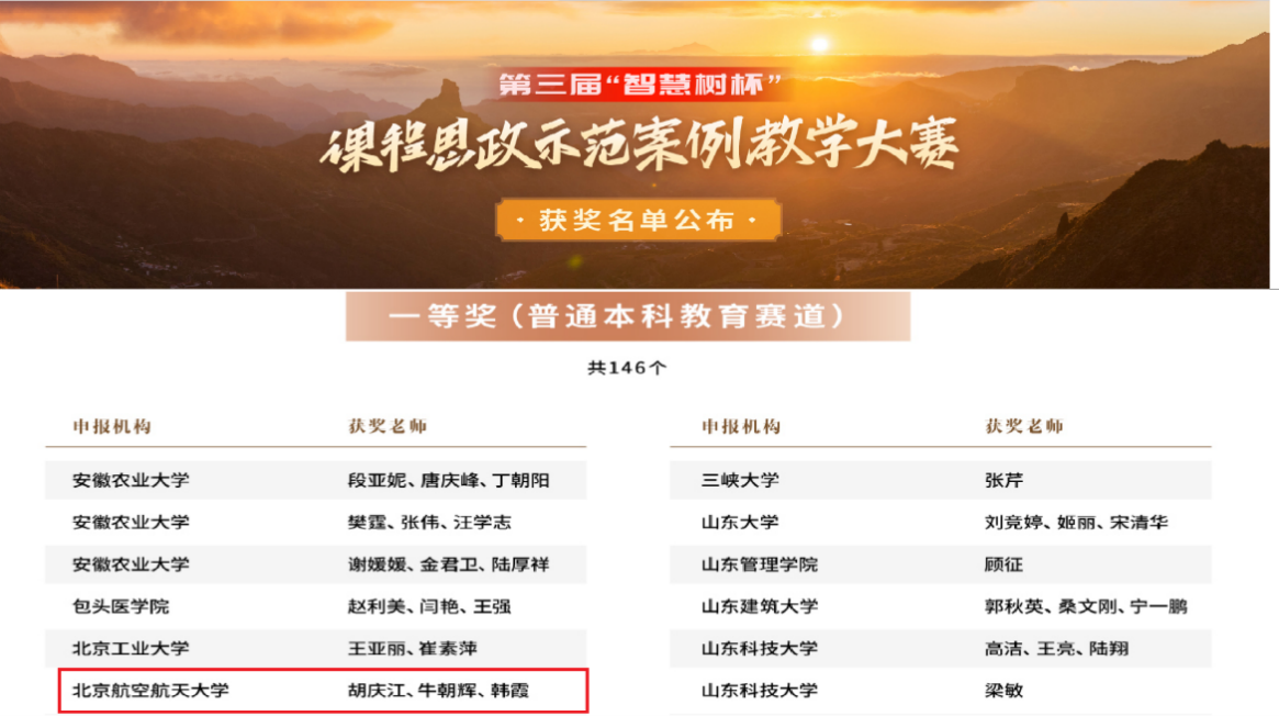 近日,第三届“智慧树”杯全国课程思政示范案例教学大赛落下帷幕,全国600余所学校的教师及教学团队提交的课程思政案例材料,经过初赛、复赛两轮评选,最终评选出特等奖97个,一等奖202个,二等奖510个,最佳组织奖14个,我院胡庆江课程团队荣获大赛一等奖。