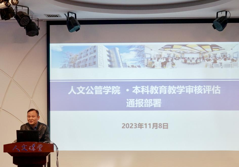 首先由詹承豫副院长从学校对于此次审核评估的相关要求、学院目前进展以及后续审核评估工作等三方面通报部署了本科教育教学审核评估的相关工作。要求全体教职工要深刻理解本轮评估的关键变化,坚持打好“持久战”,高质量完成自评自建工作、高度重视线上评估、积极配合相关的考察准备工作。