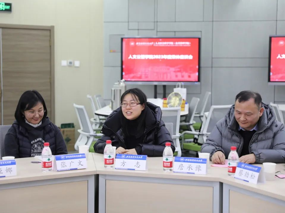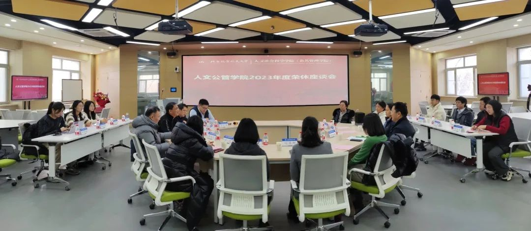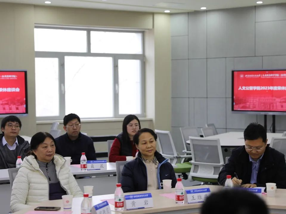 1月9日上午10:00,人文公管学院在学院智慧课堂为黄岩、王维燕、宫艳霞、张建华等教师举办2023年度荣休教师座谈会。学院院长蔡劲松,党委书记王琪全,副院长陈文博、詹承豫,党委副书记、工会主席方志,党政办主任张广文,院长助理聂晨、刘贤伟,学院工会副主席、行政管理系党支部书记刘亚娜,经济系主任何平林、党支部书记张佳书,专职辅导员张同玉,教务秘书王红玉,以及学生代表等20余人参加会议。会议由学院副院长陈文博主持。