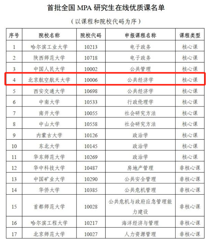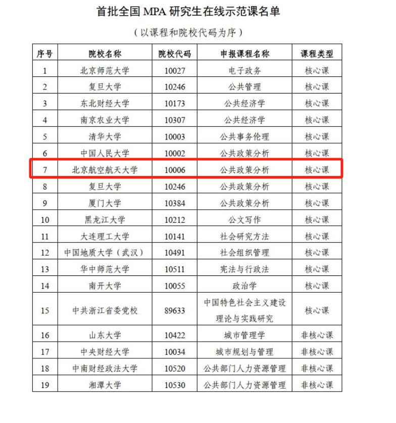 近日,全国公共管理专业学位研究生教育指导委员会公布了“首批全国MPA研究生在线示范课程”验收评审结果,共遴选出“在线示范课”19门和“在线优质课”17门。