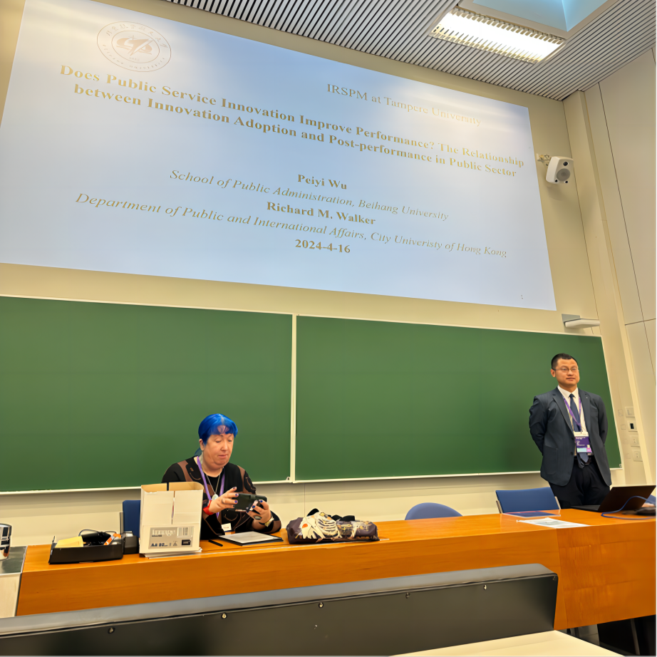 2024年4月16日至18日,金沙总站6165地址教师吴培熠赴芬兰坦佩雷大学参加由公共管理国际研究会(International Research Society for Public Management, IRSPM)举办的2024年学术年会。IRSPM年会是公共管理领域顶级国际会议之一,本次年会以“公共治理与管理的混合式未来”(Hybrid Futures for Public Governance and Management) 为主题。