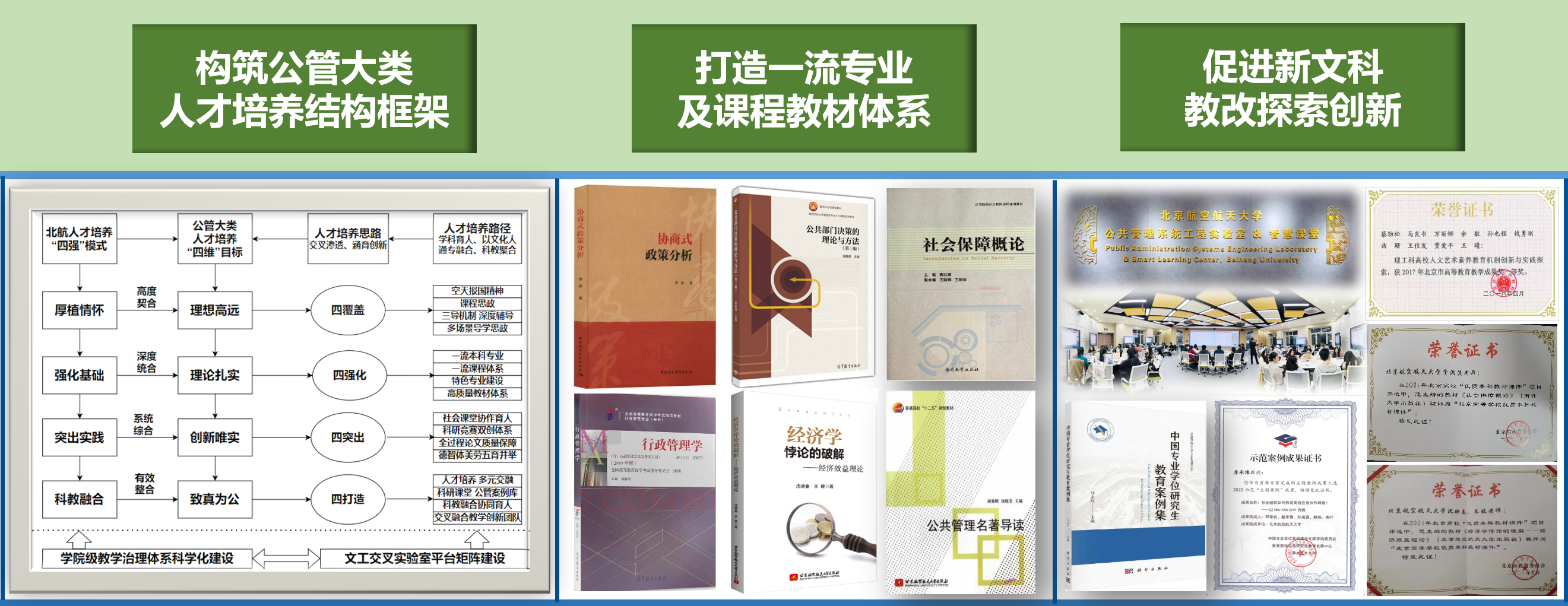 学院党委坚持以习近平新时代中国特色社会主义思想为指导,聚焦国家治理体系和治理能力现代化,抓住北航“精品文科”战略和新文科建设契机,以“传承超越、守正创新”为立院宗旨,坚持“强基固本、精深发展、聚合协同、追求卓越”的发展战略,秉承“扎根国内外公共治理实践、推动中国特色理论发展、打造科教融合育人生态”的方针,坚持“高质量内涵式、强交叉融合型”建设路径,在服务国家需求、引领学术前沿、回应育人关切、发挥特色优势等方面不断取得新突破,整体实力及主要可比性指标达到国内同类学院领先水平,核心竞争力和社会影响力持续提升,正朝着“国内一流、特色鲜明”的高水平研究型人文公管学院稳步迈进。