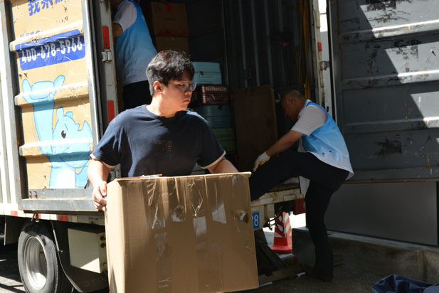 在学校学院的统一组织和安排下,同学们分批搬迁。大家互帮互助、协作配合,顺利完成了装车、发车等搬迁工作。11名志愿者同学参与到客车、货车的押车服务中。