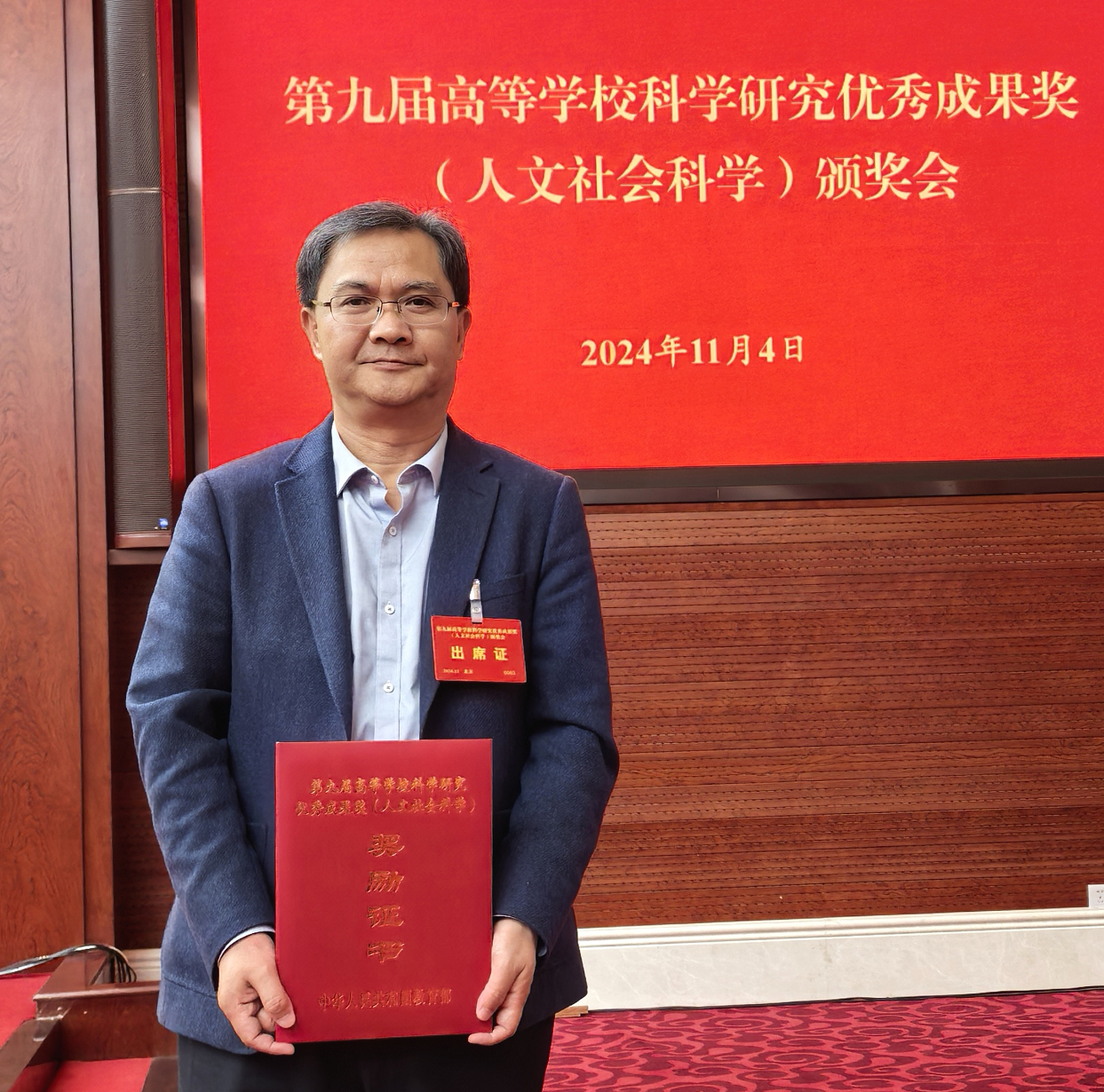 为深入贯彻落实习近平新时代中国特色社会主义思想,贯彻落实党的二十大和二十届二中、三中全会和全国教育大会精神,贯彻落实习近平总书记关于教育的重要论述以及关于哲学社会科学的重要论述,表彰第九届高等学校科学研究优秀成果奖(人文社会科学)获奖人员,以新时代哲学社会科学高质量发展更好服务支撑教育强国建设,11月4日,教育部召开第九届高等学校科学研究优秀成果奖(人文社会科学)颁奖会。教育部党组书记、部长怀进鹏出席活动并讲话。教育部党组成员、副部长吴岩主持颁奖会。