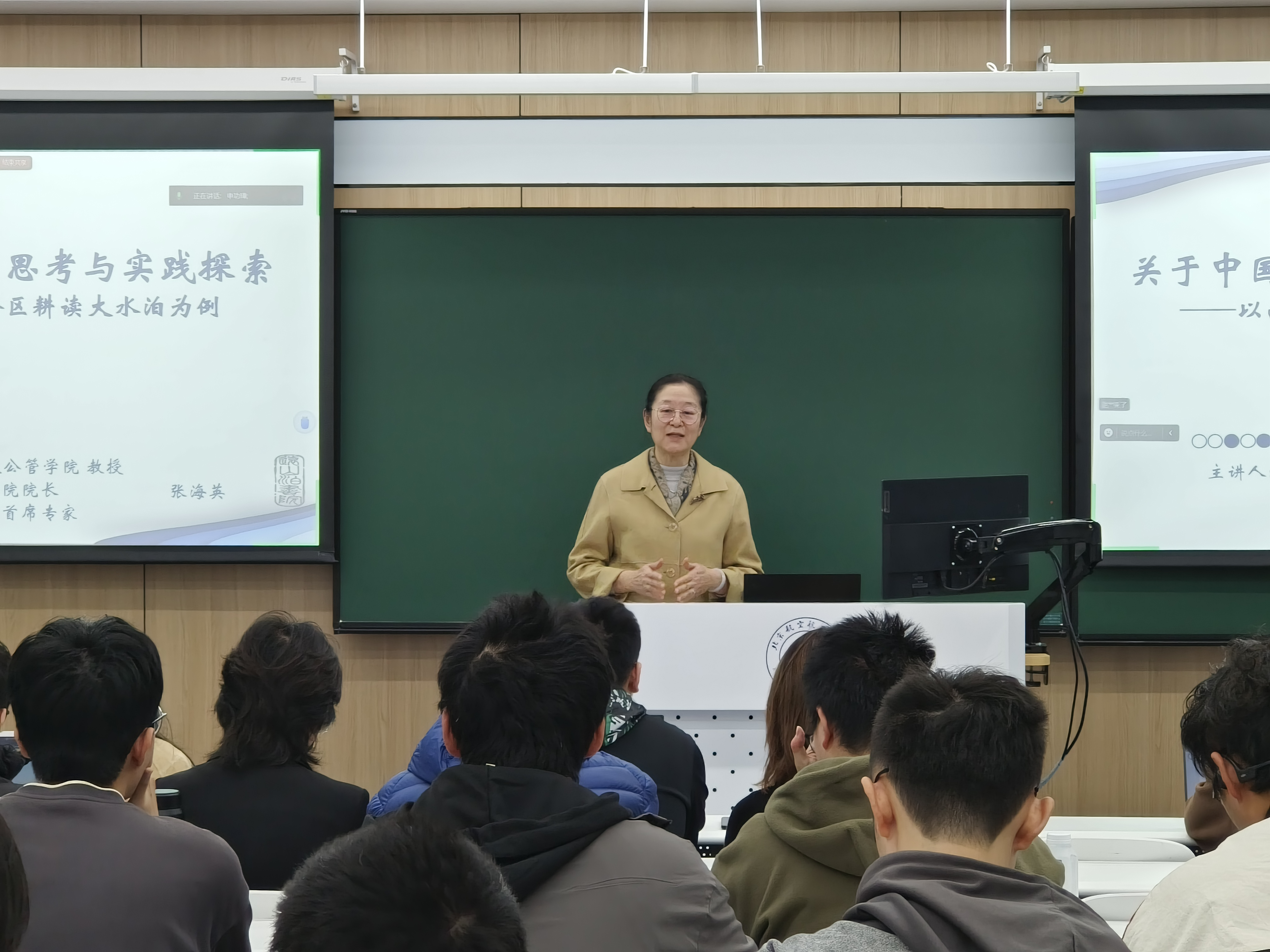 11月10日,北航人文公管学院退休教师张海英教授做题为“关于中国乡村问题的思考与实践探索——以山东省威海市文登区耕读大水泊为例”的报告。人文公管学院关工委副主任曹庆萍副教授、北航退休教授申功璋,以及本科生参加。人文公管学院党委副书记方志主持。