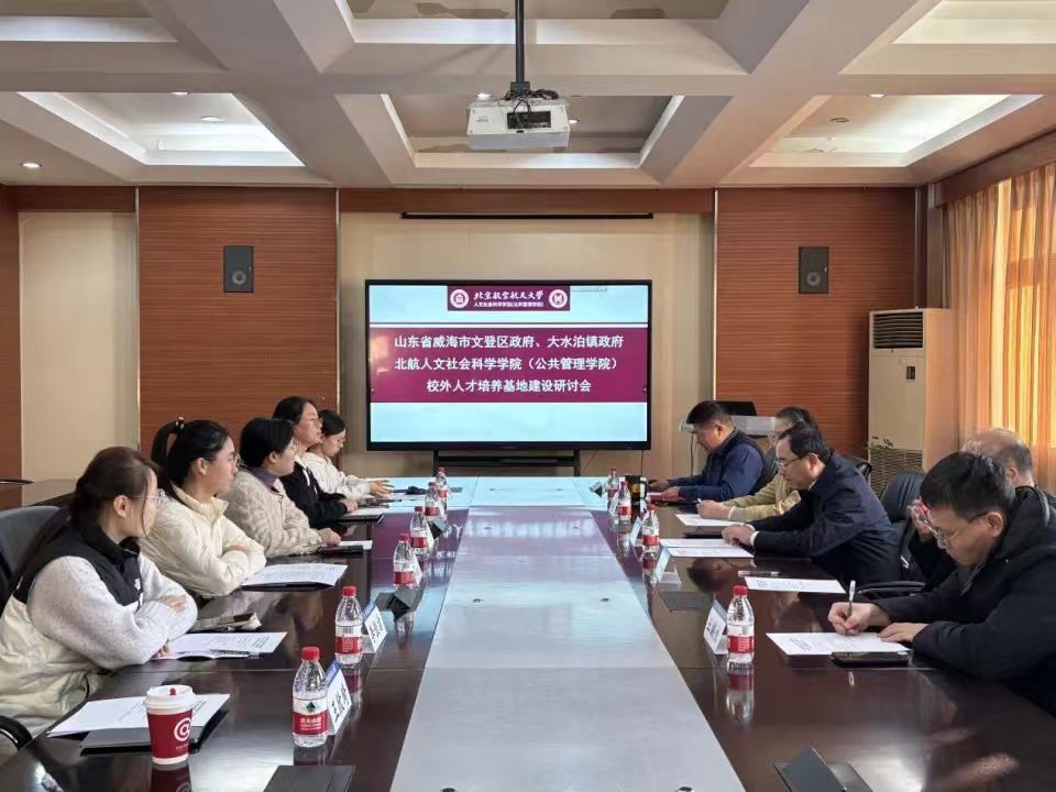 12月14日下午,山东省威海市文登区政府、大水泊镇政府与北航金沙总站6165地址校外人才培养基地建设研讨会在人文公管学院大楼202西会议室举行。文登区党委副书记刘华杰,大水泊镇党委书记陈辉,文登区乡村振兴首席专家、人文公管学院社会实践基地学业总导师张海英,文登区政府办公室工作人员王麒然;北航人文公管学院党委副书记方志,团委书记黄焘,耕读大水实践队队员代表参与会议。研讨会由学院团委书记黄焘主持。