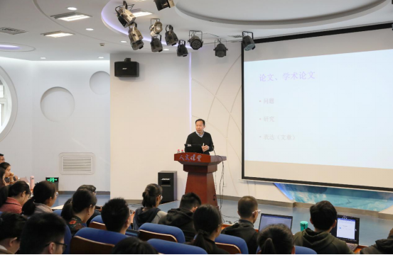 研究自定义始,叶赋桂教授首先就论文与学术论文的定义向大家做了说明。指出学术论文有四个关键词:问题、研究、成果、文章。问题是基础,研究是综合性的活动,而一切无非表达。叶赋桂教授认为,研究的本质是构建联系。要有批判的精神,保持好奇和质疑。着眼时代,大题目具有延展性和可持续发展性。叶赋桂教授举了对“学术资本主义”研究的例子,鼓励同学们要做大课题。