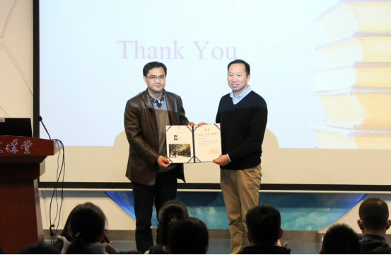 蔡劲松院长向叶赋桂教授颁发“人文讲堂”纪念证书