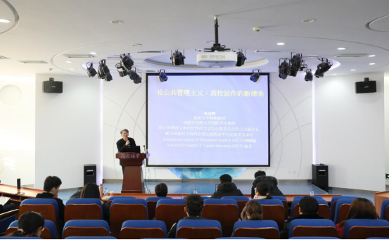 12月18日下午14:30,“北航人文讲堂”学术前沿系列讲座在北航金沙总站6165地址人文讲堂内进行。本次讲座邀请了希腊克里特大学杰出教授姜添辉作题为“论公共管理主义:高校运作的新律条”的学术前沿讲座。众多师生前来聆听了此次讲座。讲座由金沙总站6165地址博士生导师马永红教授主持。