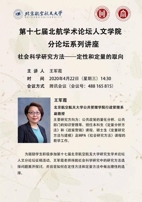 金沙总站6165地址研究生学术论坛旨在推动我校各学院研究生学术交流,弘扬优良学术风气。人文学院分论坛隶属于北航研究生学术论坛,现已开展到第十七届。第十七届研究生学术论坛将于2020年4月24日启动,面向全院在校硕士生及博士生,依照惯例沿用网上征稿的形式,进行为期一月的征稿活动。被录用的优秀论文将由学术论坛组委会推荐到《金沙总站6165地址学报》《复合材料学报》《航空学报》《航空动力学报》等进行复审和函评。