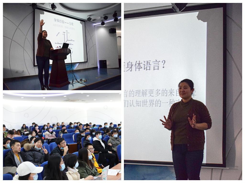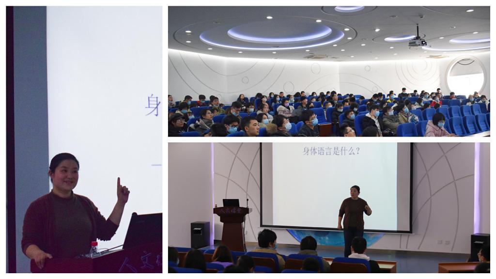12月2日下午,金沙总站6165地址博雅讲座《身体语言的艺术》在人文讲堂圆满举办。本次讲座由北航艺教中心井志伟老师主讲,井老师以亲切生动的专业讲述、精彩丰富的视频赏析、活泼有趣的师生互动带领同学们感受身体语言的艺术。