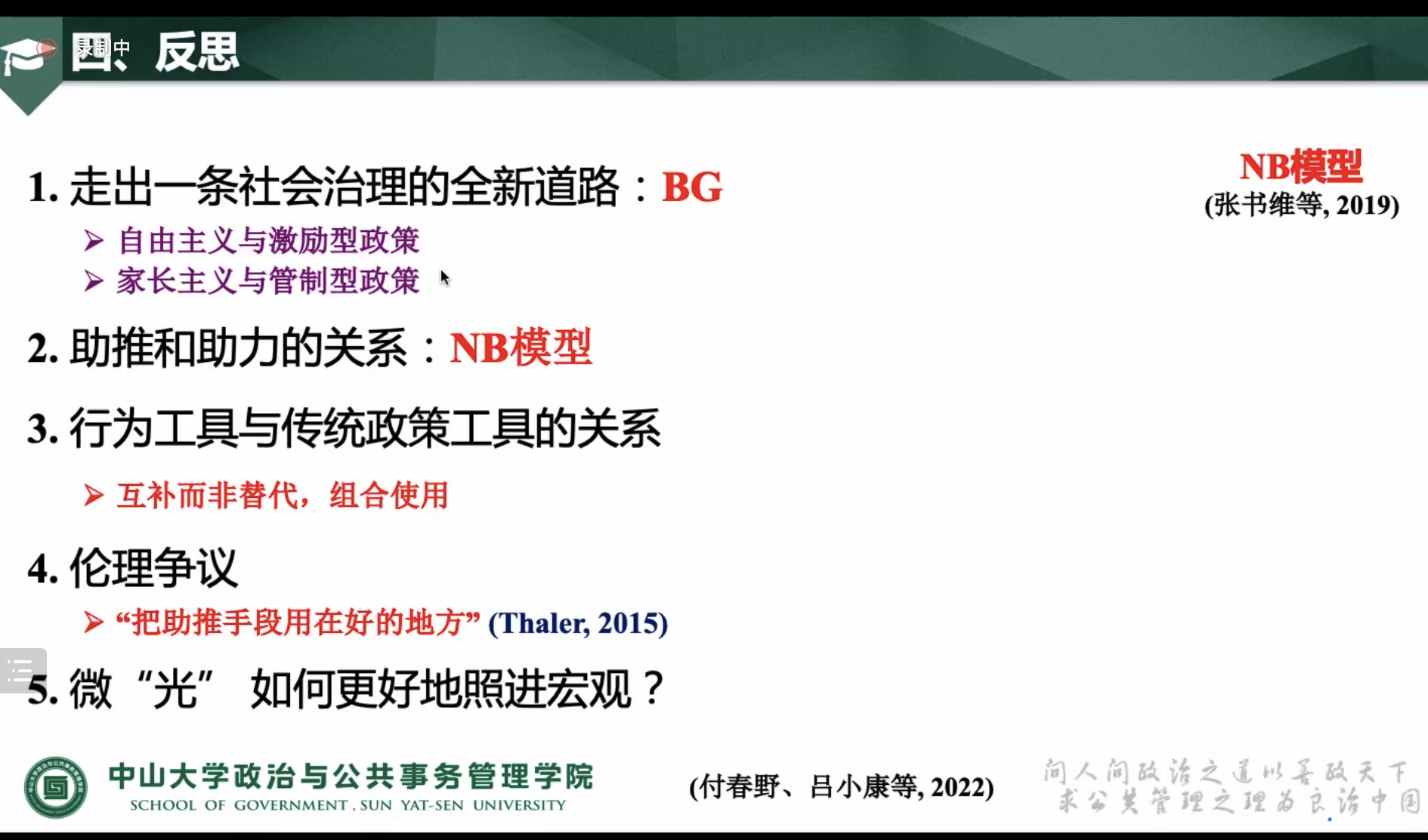 演讲的最后,张书维教授以“飞机模型”作为总结:行为公共政策(BPP)与行为公共管理学(BPA)构成行为治理的两翼,助推和助力是行为公共政策的两翼。他强调,两翼齐飞,才有望实现用“行为治理”重塑“治理行为”的理想。虽然道阻且长,但是“行”则将至。