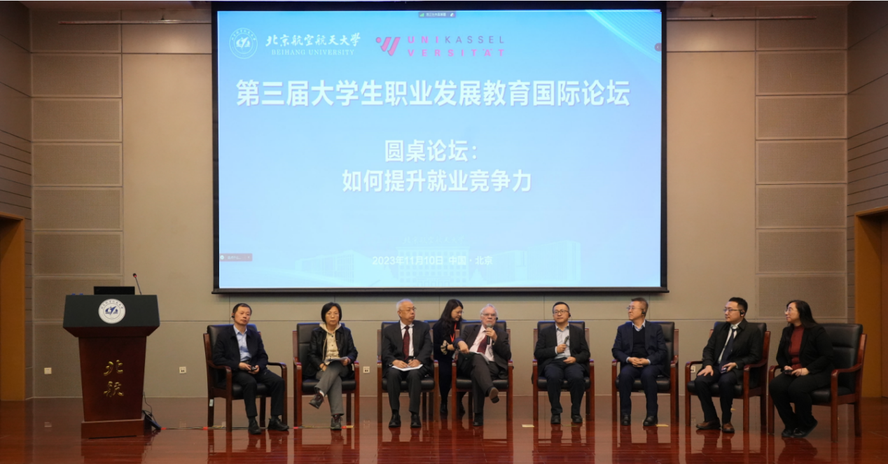 2023年11月10日,全国大学生职业发展教育研发基地学术委员会第三次会议暨第三届大学生职业发展教育国际论坛在我校举行。由金沙总站6165地址和德国卡塞尔大学共同主办的本次国际论坛,汇聚了来自德国卡塞尔大学、芬兰坦佩雷大学、英国曼彻斯特大学、丹麦奥胡斯大学、北京大学、香港大学、北京理工大学、沈阳师范大学、中国劳动和社会保障科学研究院、华为、智联招聘等高校及企业专家学者齐聚北航。教育部学生服务与素质发展中心、校学生中心、人文公管学院、高等教育研究院、全国大学生职业发展教育研发基地、来自全国各地的师生及企业人士出席会议。