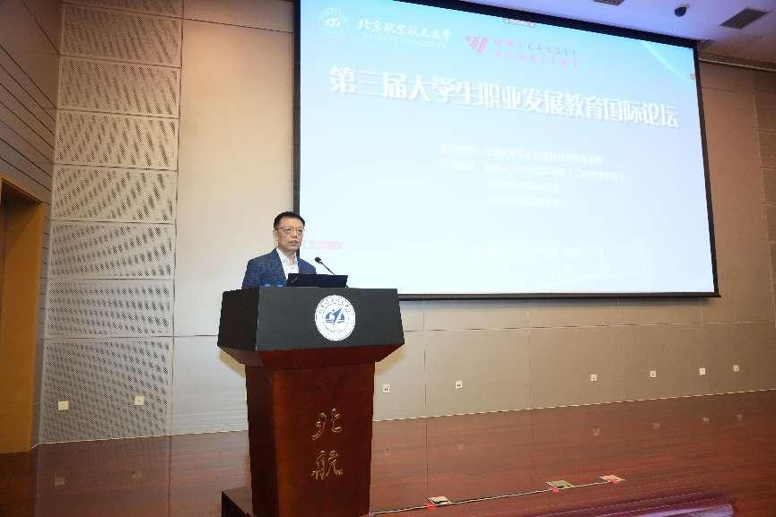 杨洪涛处长代表教育部学生服务与素质发展中心对各位同仁到来表示欢迎和感谢。他指出,自2015年起,北航作为全国大学生职业发展教育研发基地建设的承担单位,取得了很多卓有成效的理论和实践成果。为了促进毕业生高质量充分就业,离不开中国特色就业理论和实践探索,也需要不断向国际传播,展示中国促进青年就业成果,体现中国智慧。尤其经历疫情考验,举办国际会议对于加强国际学术交流打开视野、汇聚资源具有重要意义。