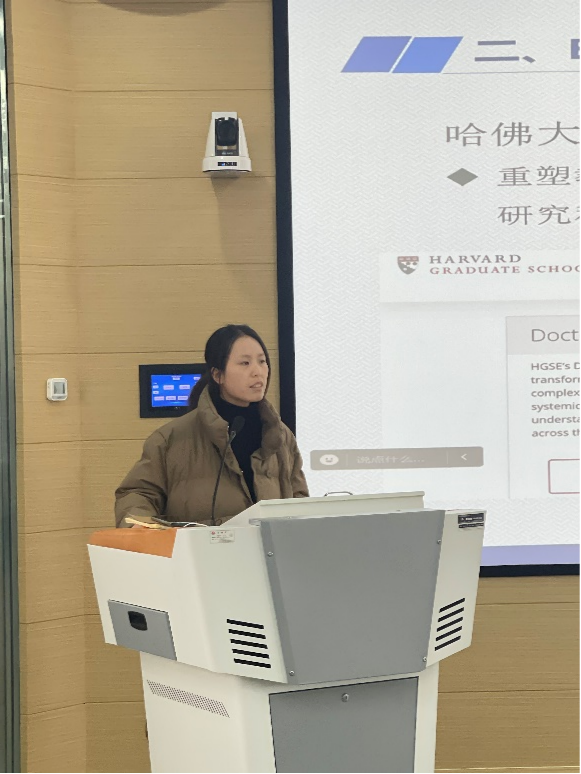 张晓会做题为《从趋同到分离:哈佛大学教育博士发展嬗变哲学反思》的分享。她首先基于人才培养是一所高校的永恒使命,专业学位和学术学位研究生只是不同时间阶段的不同时代使命的现实背景。以美国哈佛大学教育博士的产生和变革为切入点,分析得到哈佛大学教育博士的发展是认识论和政治论高等教育哲学观相互博弈的结果。教育领导博士(Ed.D.)和教育哲学博士(Ph.D.)的出现使得研究取向和实践取向暂时得到平衡发展,使得专业学位和教育博士的实践性被重新定义。教育实践与理论具有同一化,两者可进行灵活有效的转换。研究提出我国应基于教育学学科本质,重新审视教育博士的实践逻辑,对教育博士的发展持有质疑和宽容的态度认知。