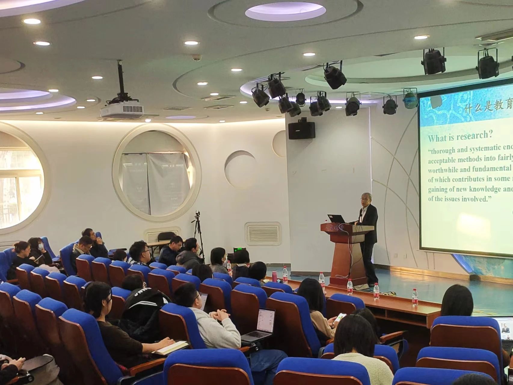 梁贯成教授从“什么是研究”问题出发,强调了教育研究需要严谨的研究方法。他指出,“以世界作为教育研究的自然实验室”,国际大型教育比较研究最能说明一般教育研究所涉及的研究方法。他以国际数学及科学趋势研究计划(Trends in International Mathematics and Science Study,即TIMSS)为例,进一步介绍了进行教育研究所涉及的研究方法。他强调,需要从五个核心问题出发:“比较什么?”“比较的对象是谁?”“如何比较?”“如何分析测量结果?”以及“如何保证数据质量?”。他通过列举生动易懂的例子,深入浅出地讲解了 TIMSS中研究方法的应用,与会的学生们对此表示受益匪浅。