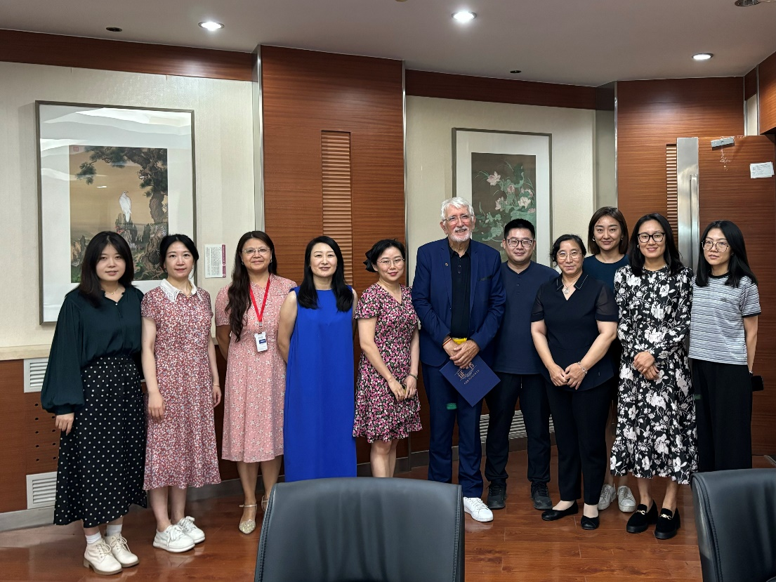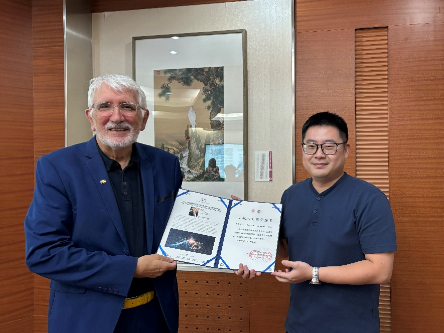 人文公管学院陈文博副院长为Ruano-Borbalan教授颁发了“人文讲堂”证书,并与Ruano-Borbalan教授就未来进一步开展系列讲座分享、交流研讨、联合培养学生等国际合作进行了深入探讨。