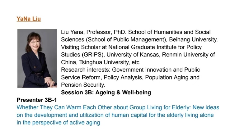 我院教师刘亚娜教授于511日参加由日本一桥大学(Hitotsubashi University(HU))主办的2023年度SIGMA研究研讨会/19养老金、保险和储蓄国际会议(Annual SIGMA Research Symposium 2023/19th International Conference on Pensions, Insurance and Savings),并做题为Whether They Can Warm Each Other about Group Living for Elderly:New Ideas on The Development and Utilization of Human Capital for The Elderly Living Alone in The Perspective of Active Aging”(《抱团是否可以取暖———积极老龄化视域下独居老年人养老人力资本开发利用的新思路》的主旨报告。