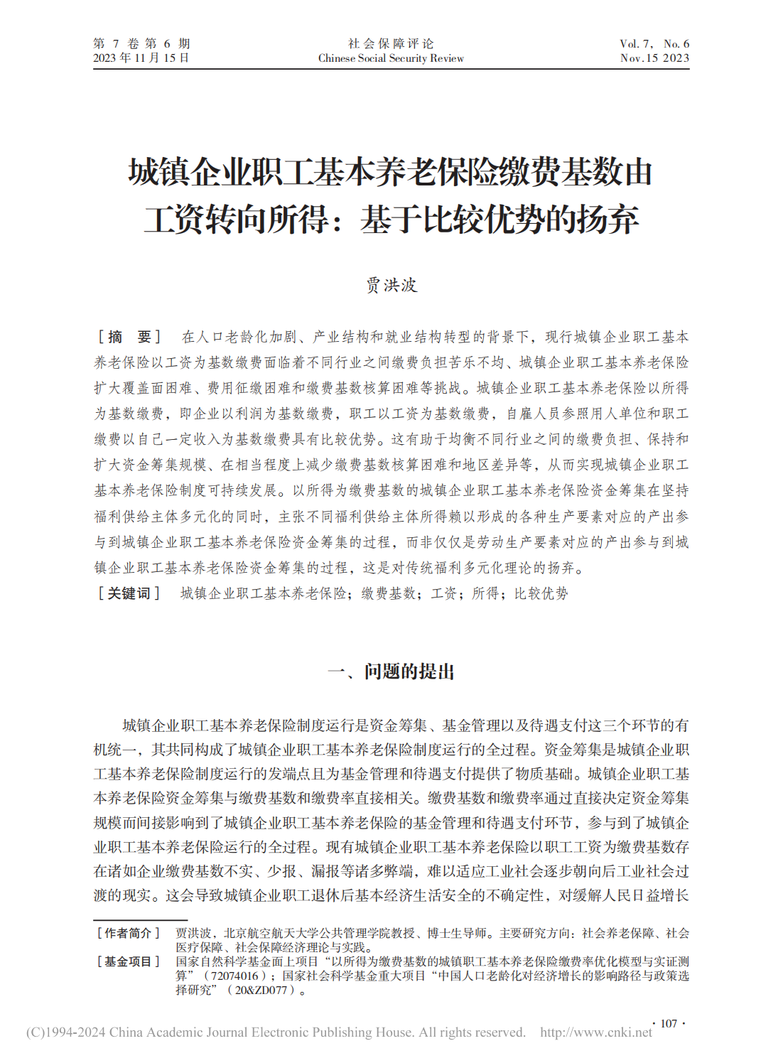 【关键词】城镇企业职工基本养老保险;缴费基数;工资;所得;比较优势;