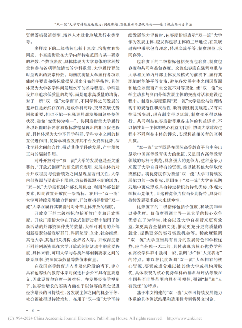 “双一流”大学可持续发展能力:问题缘起、理论基础与层次结构