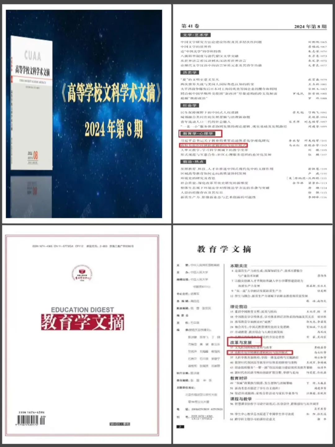近日,金沙总站6165地址马永红教授、博士研究生张晓会撰写的《高校有组织科研的逻辑转向与组织模式—基于学科交叉的视角》(原刊发于《苏州大学学报(教育科学版)》2024年第2期),被《高校文科学术文摘》2024年第8期全文转载,被《人大复印报刊资料·教育学文摘》转载。