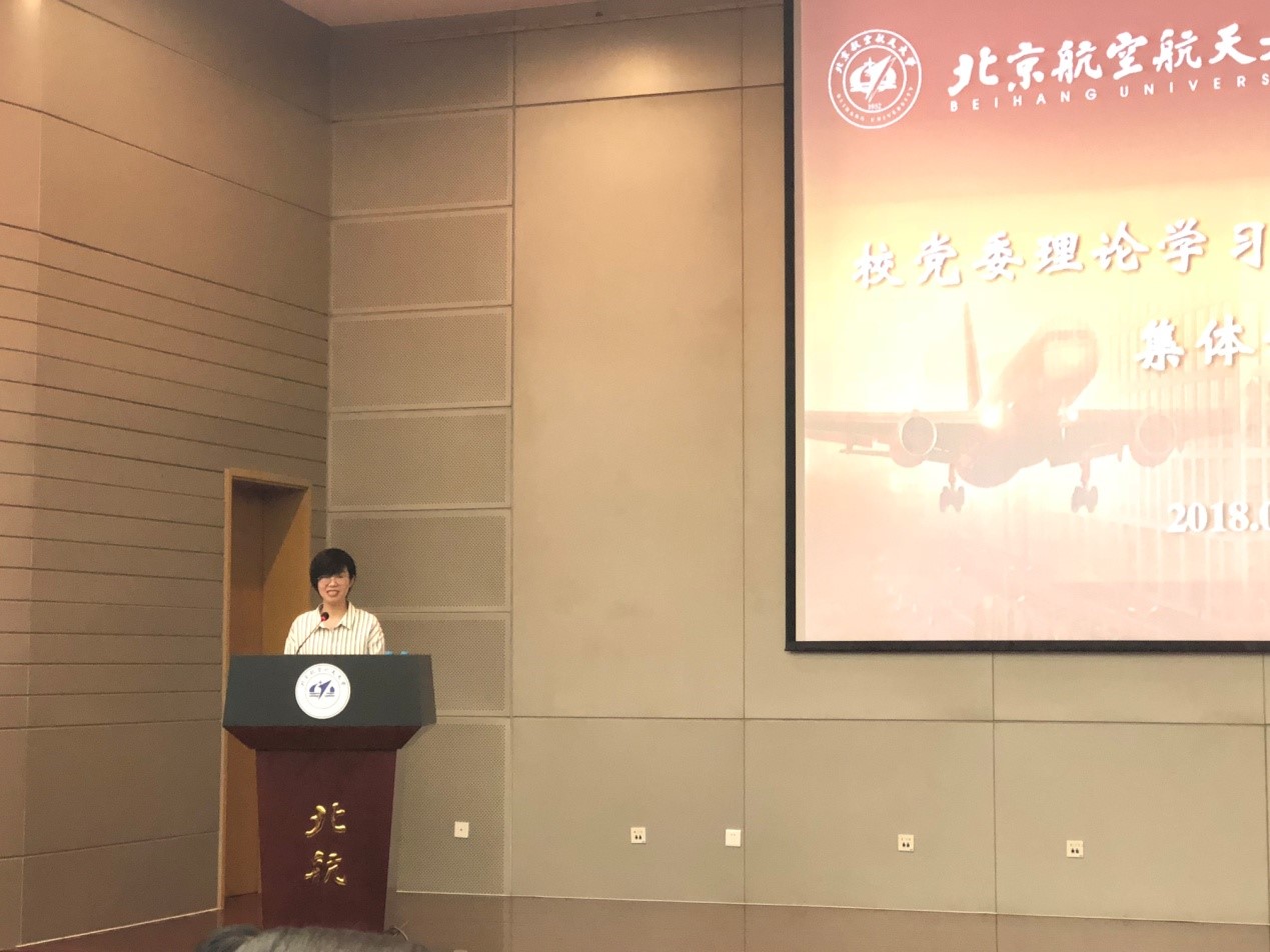 而早在五四青年节和北京大学建校120周年校庆日即将来临之际,习近平总书记来到北京大学考察并发表了重要讲话。“知行唯实小组”认真学习,并结合自身实际进行学习、讨论。在5月3日下午北航党委理论学习中心组(扩大)学习会上,王雪晴作为研究生代表发言,结合自身角色,分别从北京高校学习习近平新时代中国特色社会主义思想博士生宣讲团、学习十九大精神北航研究生宣讲团成员、研究生会副主席和当代青年学生角度汇报了学习体会:我们都相聚在周恩来总理所期待的那个中华腾飞世界之时,风华正茂的我们也必将爱国励志,求真力行,不做看客,也不做过客,以实际行动续写新时代的崭新华章!