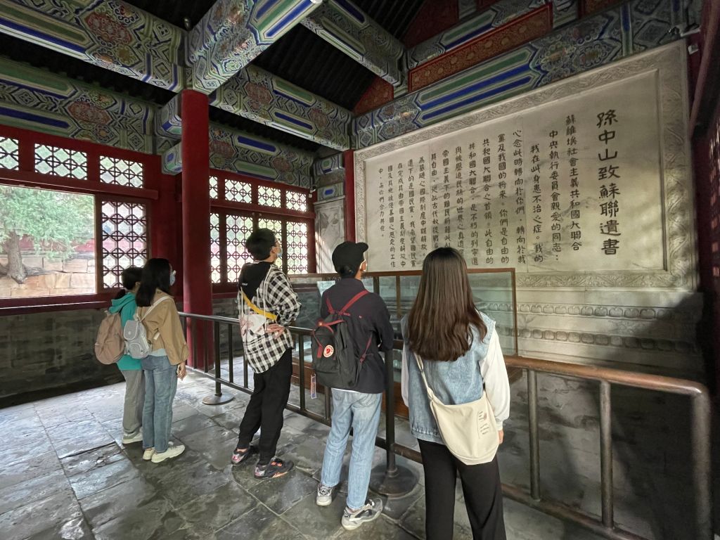 10月13日下午,金沙总站6165地址本科生第一党支部、第二党支部27名学生党员前往北京香山孙中山纪念堂,开展“悼念革命先驱 传承报国精神 勇担复兴重任 ”主题党日活动,回顾辛亥革命110年历史,学习和弘扬孙中山等革命先驱矢志不渝的崇高民族精神。